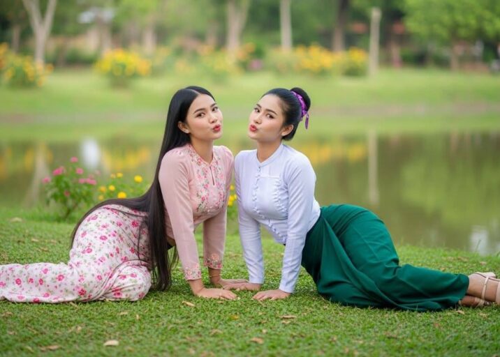 “ကဲ ဝိုင်းဝိုင်းလေး ဒူးထောက် ထိုင်ကြ” ဆရာမခြောက်ယောက် ဒူးထောက်ကာ ဝိုင်းထိုင်လိုက်သည်။ သူ အလယ်ထဲ ဝင်ပြီး သက်သက်ဇော်ခေါင်းကို လက်နှစ်ဖက်ဖြင့် စကိုင်ကာ ပါးစပ်ကို စလိုးသည်။ ဆံပင်များ ဖွာထွက်သည့်အခါ ဆံပင်ကို ဆုပ်ကိုင်ပြီး ခေါင်းကိုဘယ်ညာ ဆွဲလှုပ်သည်။ ပါးစောင်တွေကိုလည်း ထိုးသည်။ အာခေါင်ကို ထိုးကာ စောက်ပတ်လိုးသလို လိုးသည်။ သက်သက်ဇော်မှာ လျာရည်များ မထိန်းနိုင်အောင် ဖြစ်ရသည်။ သူက အဆုံးထိ ပါးစပ်ထဲ သွင်းပြီး ရုန်းမရအောင် ချုပ်ထားသေးသည်။ လီးခဏ ထုပ်ပြီး အသက်ရှုခိုင်းသည်။ နောက် ပြန်သွင်းသည်။ လျာရည်က တများများနဲ့ များကျနေသည်။ နောက်တွင် ငြိမ်းက ထိုင်နေသည်။ ထို့ကြောင့် ငြိမ်းကို ဆွဲယူကာ သူ့ဖင်ကြားထဲ ညှပ်လိုက်သည်။ “ဖင်ကို လျက်” ငြိမ်းက သူ့ပေါင်ကို တစ်လုံးစီကိုင်ကာ သူ့ဖင်ကို လျက်ပေးသည်။ ထွန်းထွန်းသည် ရှေ့မှသက်သက်ဇော်ခေါင်းနှင့် နောက်မှ ငြိမ်းခေါင်းကို ချုပ်ကိုင်ထားသည်။ ငြိမ်းသည် ဖင်ကို လျက်ပေးဆိုသော်လည်း လျက်လို့မရပဲ နှုတ်ခမ်းနဲ့ တေ့နေသဖြင့် ထွန်းထွန်းဖင်ပေါက်ကို နှုတ်ခမ်းဖြင့် စုပ်ပေးရသည်။
