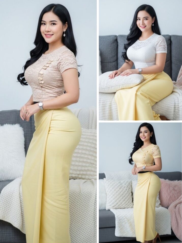 ဘာပြီးလျှင်ဘာလုပ်ရမည်ဆိုတာ သိနေသူ ဦးကျော်ခေါင်ကတော့ လက်သွက်လှသည်။ စကတ်ထဘီ၏ ဘေးချိတ်နေရာကို လက်နှင့်စမ်းပြီး ဆွဲဖွင့်လိုက်သည်။ ထဘီစက ခါးနေရာမှ ကွာသွားပြီး အောက်ခံပင်တီ အဝါရောင်လေးကို လှမ်းမြင်လိုက်ရသည်။ စွင့်ကားလှသော တင်အိုးတွေက တောင့်ခံထားသဖြင့် ထဘီက အောက်ကိုတော့ လျှောကျမသွား။ ဦးကျော်ခေါင်ပင် လက်နှင့်ဟိုဘက်ဒီဘက် ထိန်းကိုင်ပြီး တင်ပါးတွေကို ကျော်အောင် လိပ်ချလိုက်သည်။ ပျော့ပြောင်းသည့် ထဘီအနက်လေး ခြေရင်းမှာ ပုံသွားချေပြီ။