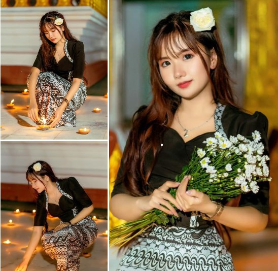 မဝိုင်းတစ်ယောက် ထမိန်ရင်လျားလေးဖြင့် ထွက်လာကာ ပြန်လည်နှုတ်ဆက်လေသည်။